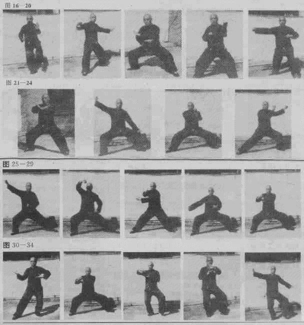 他的身躯虽然较胖大,但练起拳、剑却非常轻灵、稳健、潇洒。他的推手功夫更使人佩服,和学生推手,或用轻灵劲,或用沉重劲,无不随意,使对方站立不稳。他讲粘劲时,常让学生们站稳,他伸掌做按的发劲,当手掌还未接到胸前,就立刻略收,学生像被吸引住似的身向前倾,站立不稳,这是他巧妙利用学生的反应的功夫。