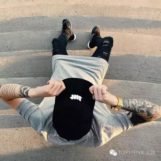 上面的街头风张扬有态度,但不是什么人都适合,反而有的人喜欢简单一点,那么直接素tee 破洞 球鞋,看起来清爽但又不会没特色。