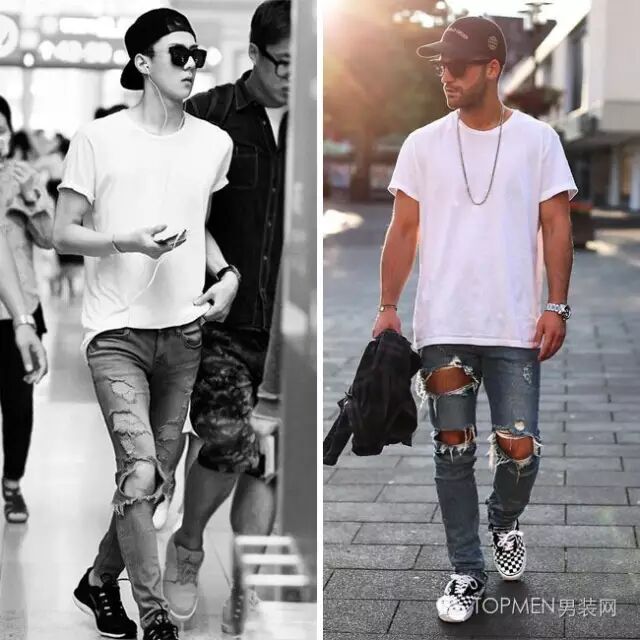 如今破洞早就是街头潮男的首选,搭配起街头风来绝对是个中好手。