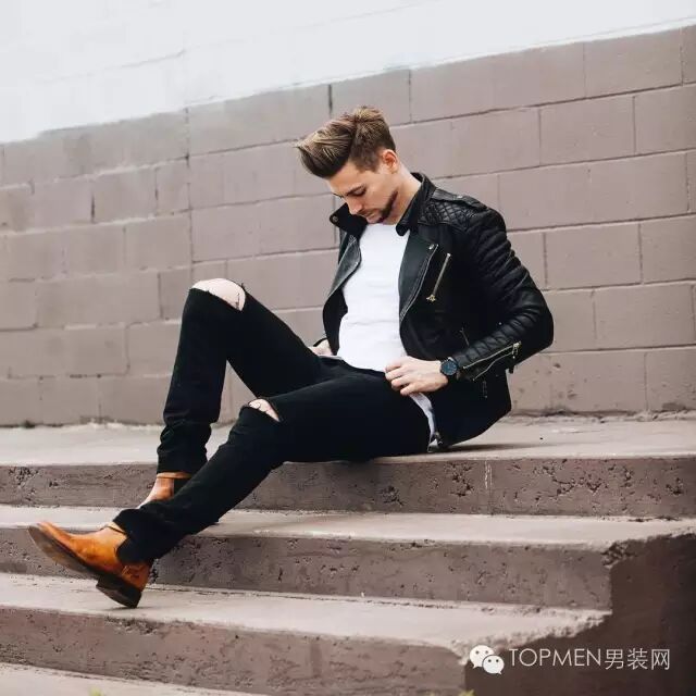 破洞除了搭配夏季穿搭以外,秋冬照样有型,特别是修身黑牛仔搭配机车夹克简直帅到没朋友。