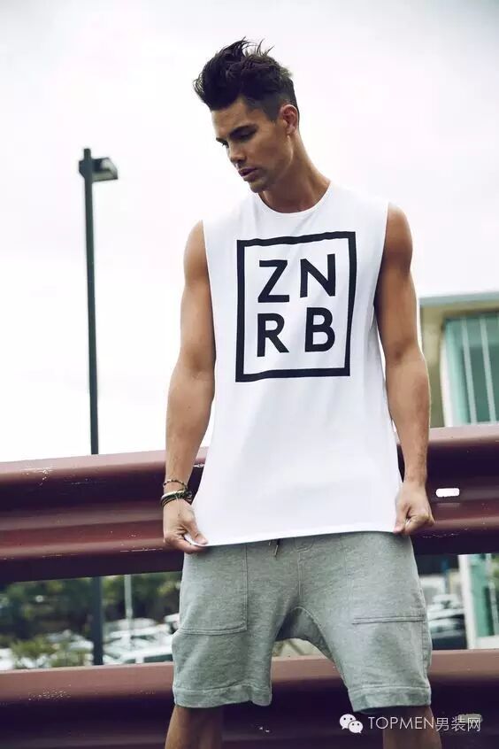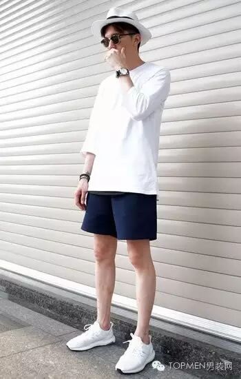 如果是运动型男生的话也可以试试毛圈面料的运动短裤,灰色或者黑色都挺好搭的,直接白色上装就OK了。