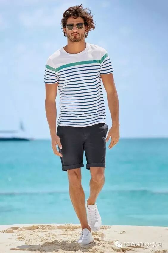 海军蓝和白色的搭配本来就很有海洋的味道,如果是衬衫和短裤的组合则有高富帅游艇出海的既视感。
