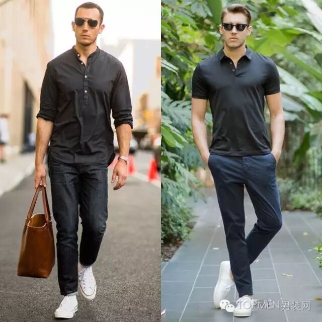 或者亨利领上装和POLO衫也是商务男士的首先,下装搭配九分深色裤装既可,很适合穿去上班。