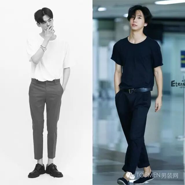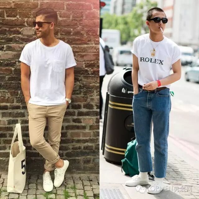直接来个上下搭配——白T配白鞋,然后裤子随便穿就可以了。