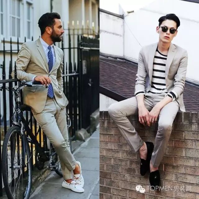 其实西装搭豆豆鞋也是可以的,不过春秋更适合,一般情况这么热的天西装还是免了吧。