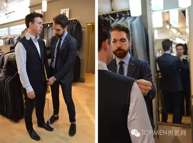 但是,即使是定制,也有分Made to Measure(半定制)和Bespoke(全定制)。MTM相对于Bespoke时长较短,他们会有款式的固定版型,会在给你量身取得数据之后再对已有的版型进行修改,所以你最后得到的西装是在各方面都相对合身的,而无需再做修改。