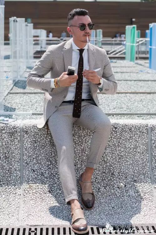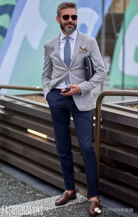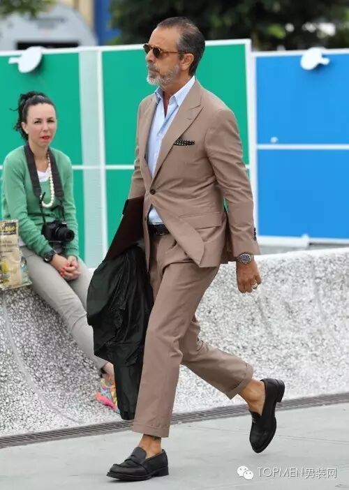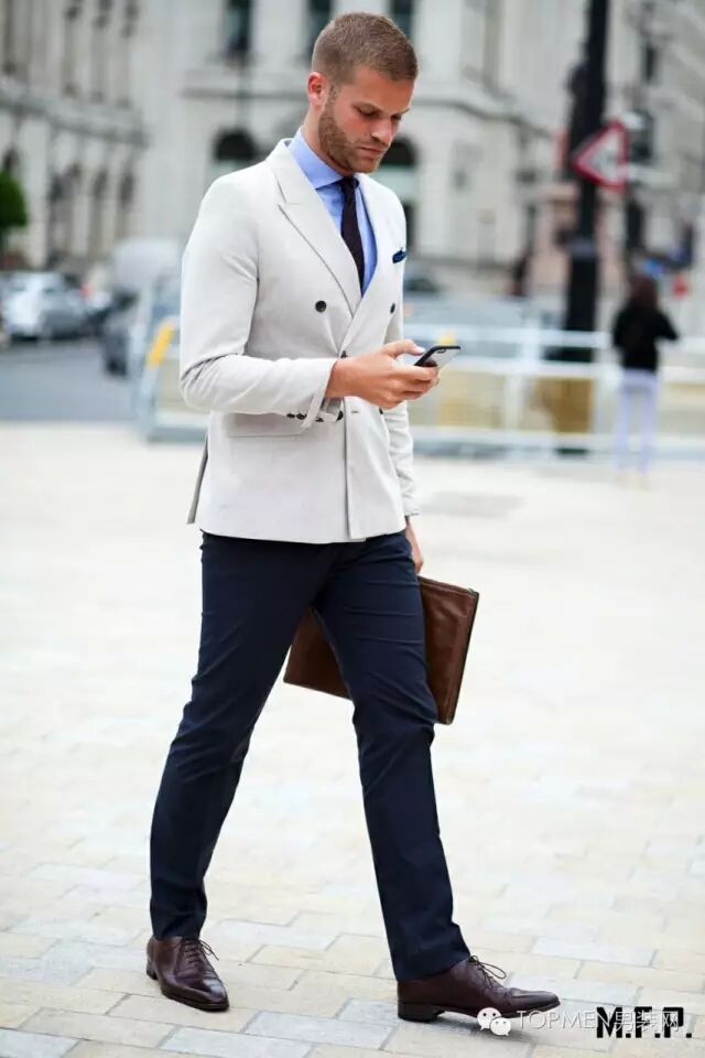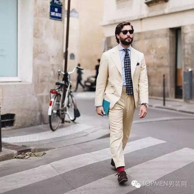 搭配米色调或者灰色调的西装看起来既有绅士的高贵,又有一种随性的时髦,反而更有质感,而且男人味也居然跟着增强了。