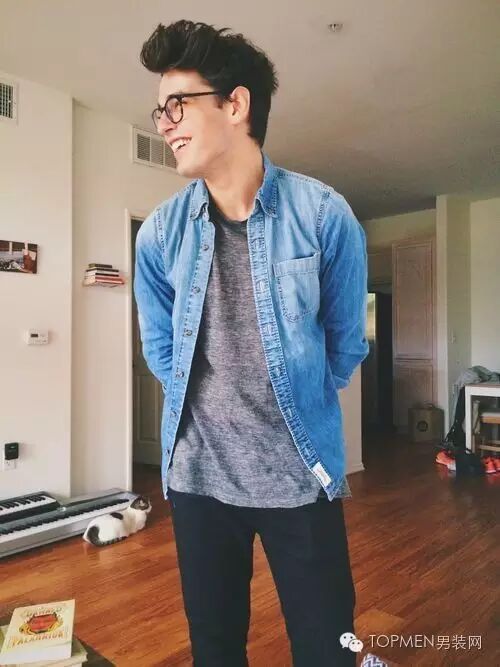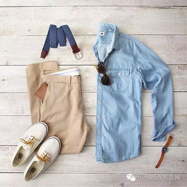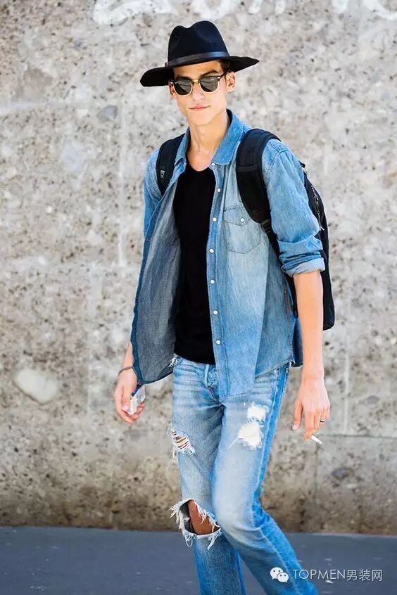 关于牛仔衬衫真没什么好说的,反正就是一个字——帅!风格也是比较多样,像是这两年,绅士们就特别喜欢拿来搭配西装。如果你爱绅士风,单穿牛仔衬衫建议不要选择颜色过深的款式。