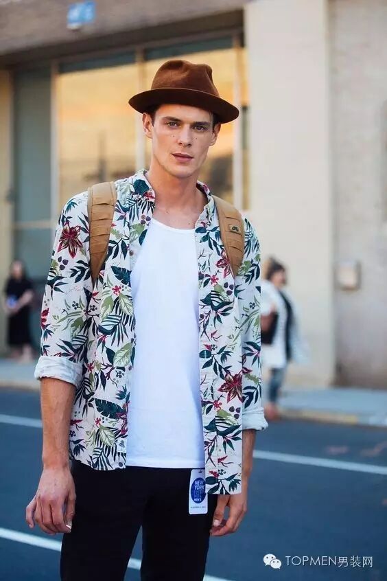 印花衬衫相对来说风格反倒是没那么街头,由于本来就很花,所以内搭的Tee还是要用大面积的黑白色来中和,适合性格外放但气质又能沉得下来的男士。