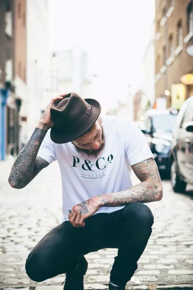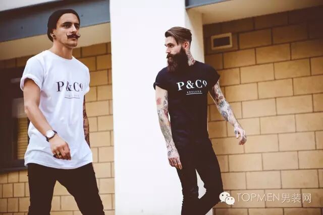 P&Co.在黑白Tee上印以简单的LOGO,花臂男们穿起来就可以帅炸天,而且多了点儿学院风的味道,看起来没那么痞。
