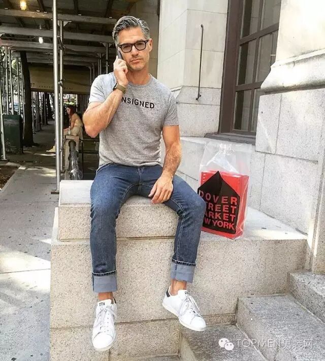 其实看到这里你应该就不难发现,字母tee和熟男也可以配一脸,前提你就不能选择街头风那种oversize的tee,合身的款式才能更好地表现出你的精气神,这时即使你全身都是很休闲运动的打扮也不会过。