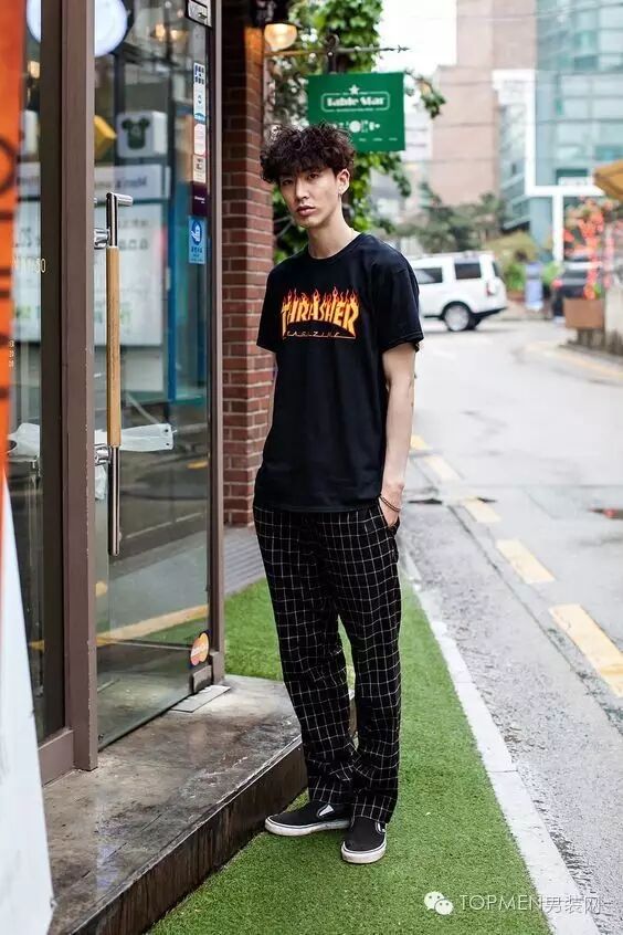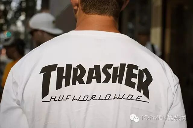 以及上半年被潮人们各种穿的THRASHER,它家的标志就是字母印花Tee,不分男女都能穿的特性可能也是它能大火的原因之一。