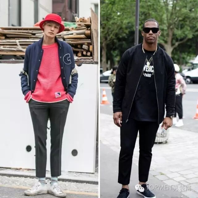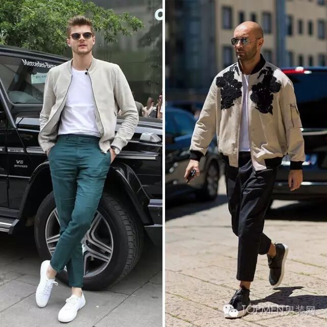 短夹克在秋季的重要性是有目共睹的,就像是夏天的T恤一样。但是很多人会觉得夹克都是比较休闲的所以多以牛仔裤或者chinos搭配,实际上夹克 西装裤穿出来的质感才是最强的。一件白T,一件bomber jacket,一双sneakers看起来都是运动风,但是西装裤一来立马变霸道总裁。