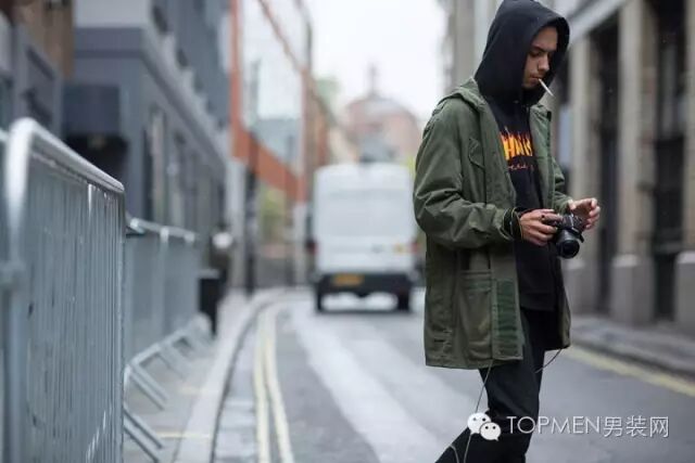 而且只要再冷一点吧卫衣内搭在外套里面既能起到保暖的作用,还能增强你的气势,特别是连帽的款式。