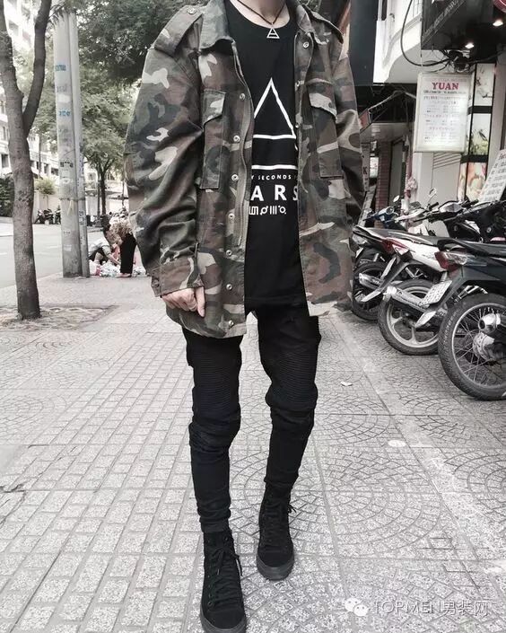 4.霸气(适合高个子):宽松素色卫衣 深色裤装 军靴