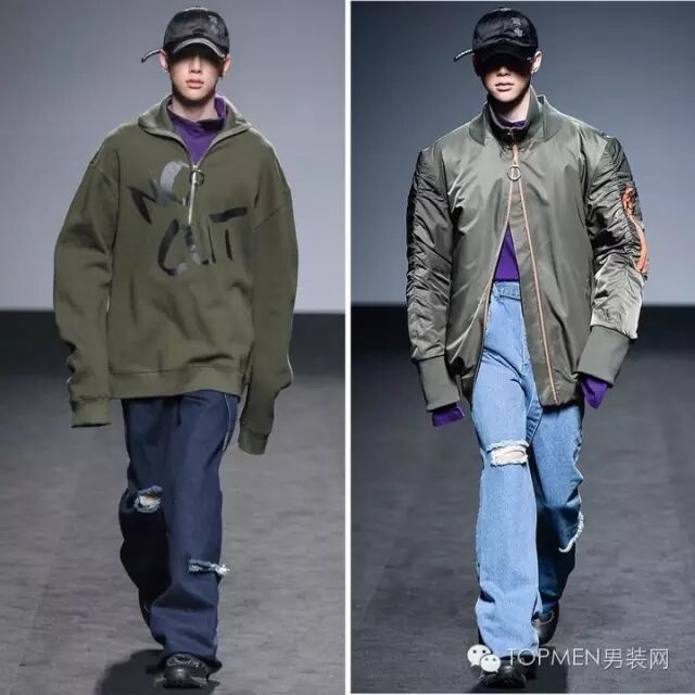还有就是外套,什么牛仔外套、皮夹克、bomber统统做成超长袖。说实话,其实外套比卫衣要更难穿一些,无论对于身材还是气质都是有要求的,穿不好就变犀利哥了。