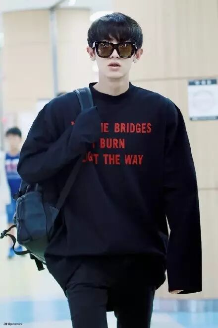 而在韩国的一众明星里,EXO的灿烈也是经常在机场造型中身着vetements,因为本身身高比较高,所以也是hold住无压力。