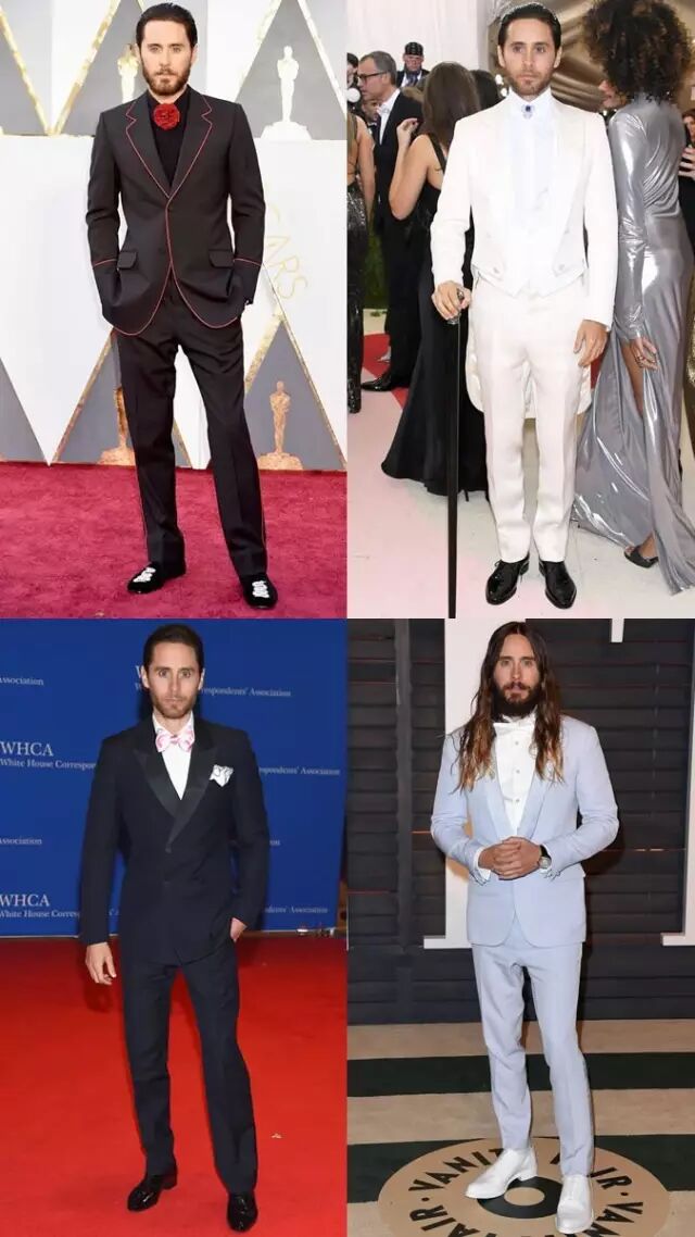 有时候看莱托的打扮经常会感慨他“帅不过三秒”,其实不然,对于正装打扮的他而言,穿上合身的西服,搭配一条贴合的西裤,无论头发绑起来还是放下来,正经起来的杰瑞德·莱托就问你帅不帅?