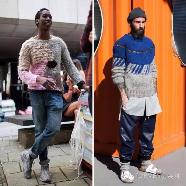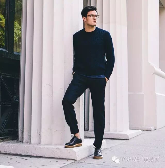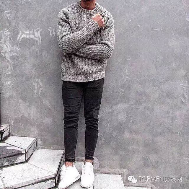 虽说粗针织总体感觉比较休闲,但是熟男大叔同样也能穿好看,要么选择黑色或者藏青色的合身款,要么选择那种灰黑或者灰白混织的款式,就能时髦与稳重兼具了。