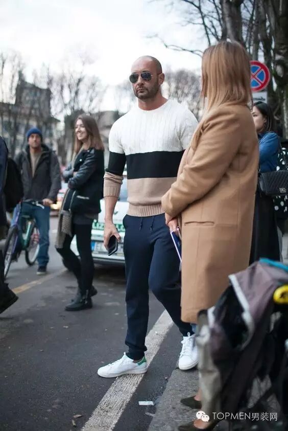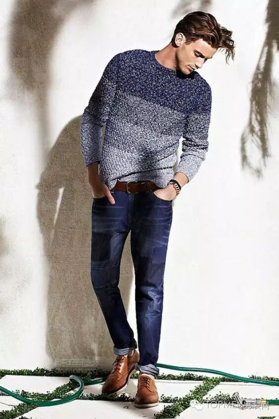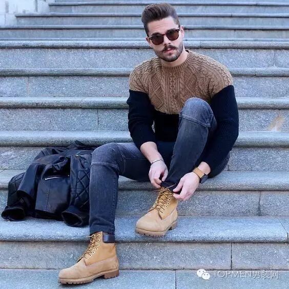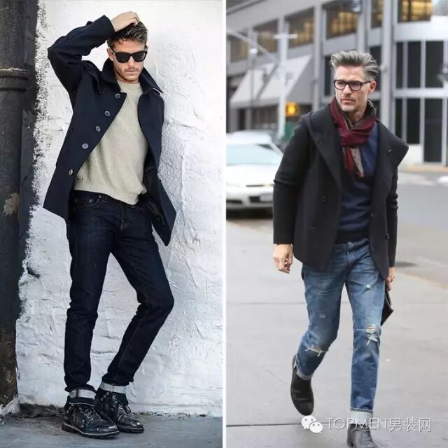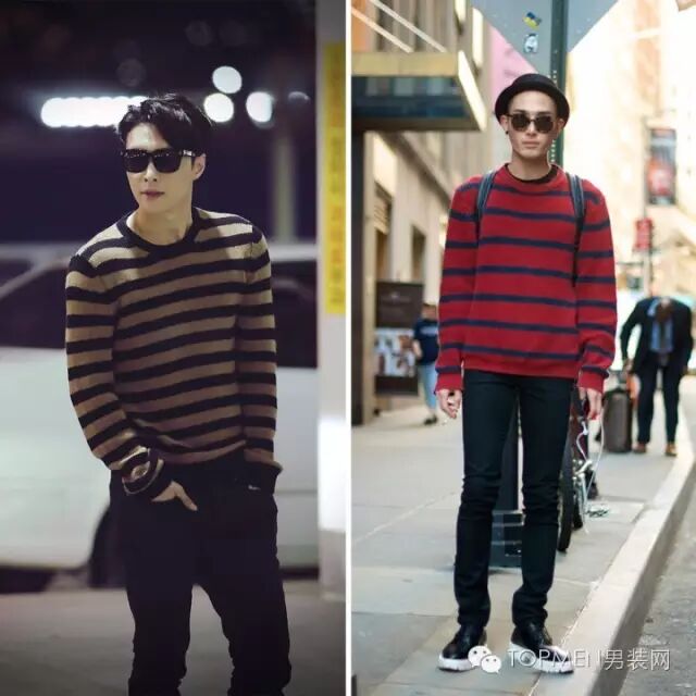 前面都在说素色的,但是如此沉闷的季节,你也可以来几件稍微有色彩的点缀一下生活啊。比如年轻小伙子们就可以选择条纹的粗针织搭配黑牛仔,妹子们在路上都会多看你几眼,但也不会夸张过头。