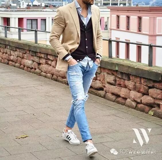 街头风的小伙伴也可以选择稍微oversize的款式,有点儿破洞什么的就更潮啦,不过就是太透风,也就20℃左右可以穿出来招摇一圈。