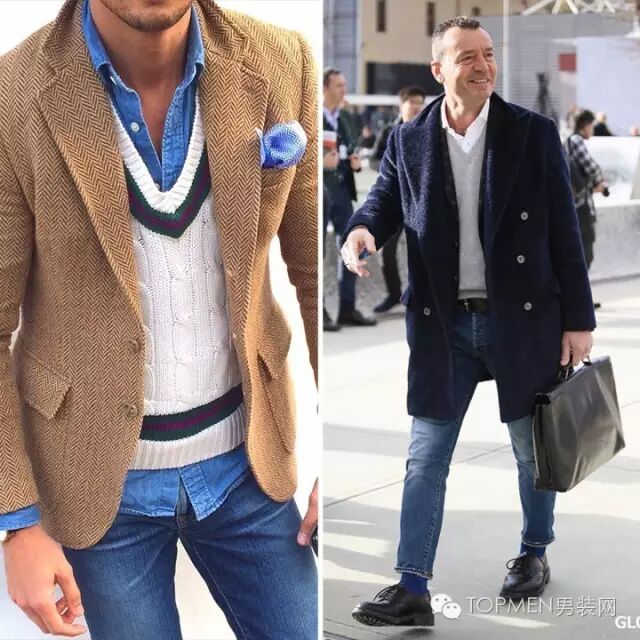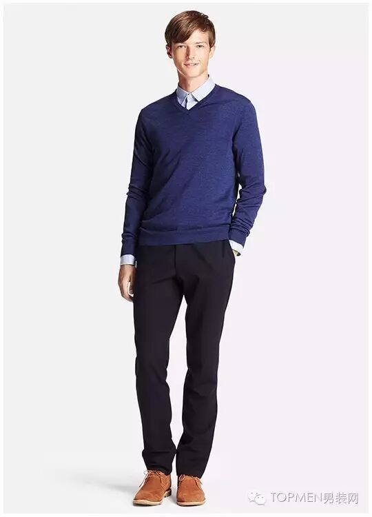毛衣和衬衫这个组合基本上是每一位男士都可以尝试的搭配,特别是对于平时风格以smart casual为主的男士来说,这更是秋冬季节必不可少的look。细针织和衬衫的搭配就显得特别斯文优雅,再配上一条西装裤就能帅气出门了。