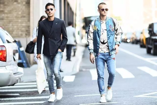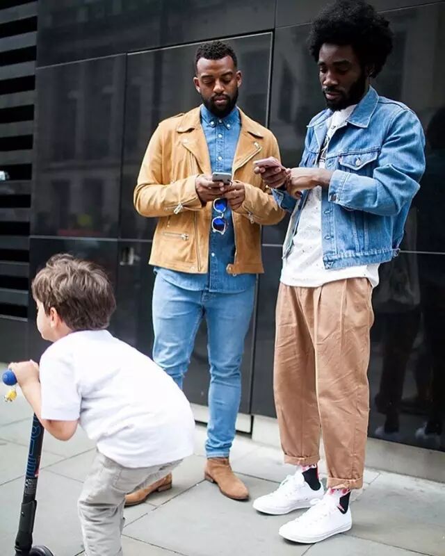 对于街头元素来说,牛仔是少不了的。简单的T-shirt外加上一件牛仔衬衫\ 外套,除了让人渗出型格之外,在这种秋季不稳定天气的情况下就能更好的为自己加衣减衣,非常实用。如果想为造型增添点层次感的,加上太阳眼镜、棒球帽、抢眼波鞋(最好是白色)或者冷一点的时候多加一件外套撞色也很不错。