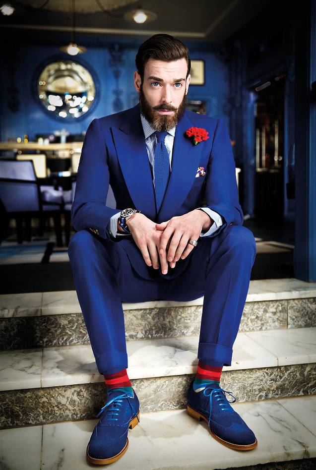这个稍稍搭配起来需要点功力,虽然都是以蓝色为主,但在各种深浅蓝中,能找到有联系时尚感的还是需要点技巧。如果从头到脚都以蓝色为主调,非常适合想要突显自己的男士,建议恤衫、领带的颜色配搭上可选用比西装外套色调为浅的颜色,这样看上去就更有层次。