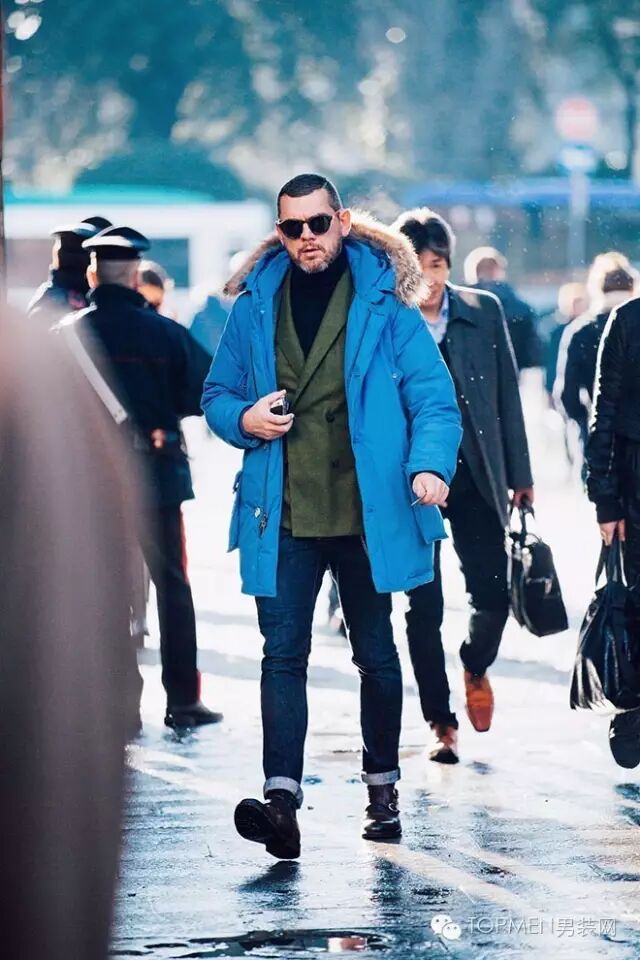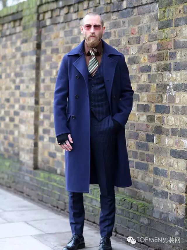 可对于大衣来说,蓝色绝不只一种,我们看到的只说是大多数。像是比较浅的粉蓝色年轻小伙子穿起来就正正好,而艳丽的宝蓝色则可以让大叔优雅地骚起来。
