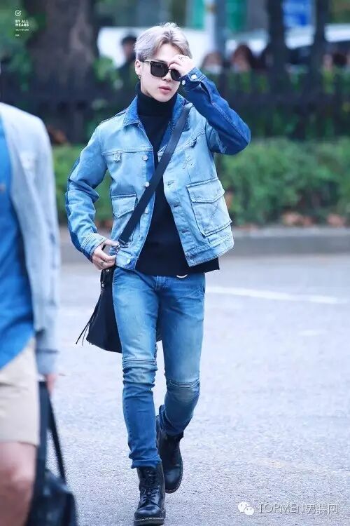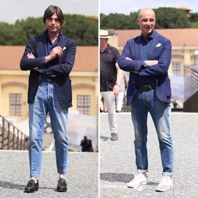 再说了,牛仔夹克又不是只能搭T恤,温度低一些搭毛衣也是可以的呀,只要你的外套不要太紧身就行。蓝色和黑色的组合时髦反应好像也不错。