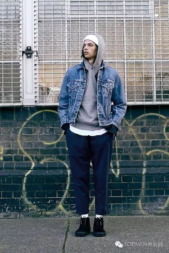 你也可以搭上潮人最爱的连帽卫衣,其实现在很多卫衣加绒的比毛衣还暖和呢。