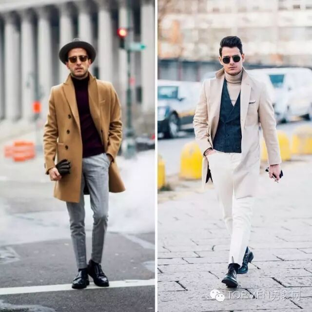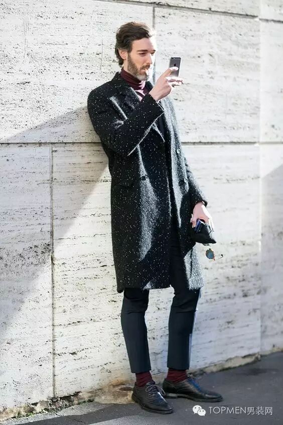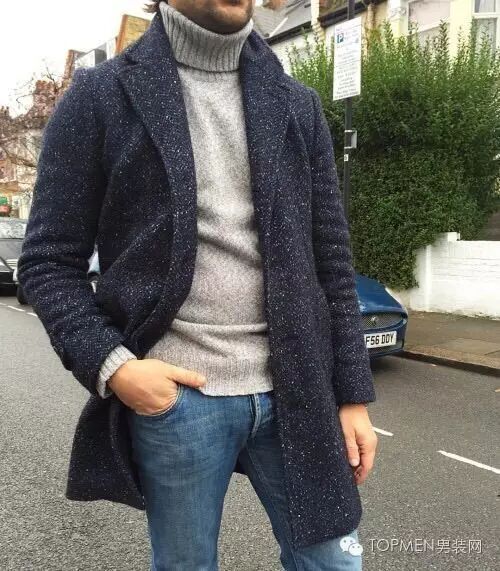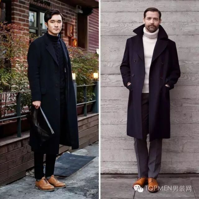 其实搭大衣道理和搭西装是一样的,都是走气质型的路线,只不过大衣更暖和。但是搭大衣的话风格可以更百变一些,比如搭肩线合身的直筒经典大衣就是熟男们最爱的套路。