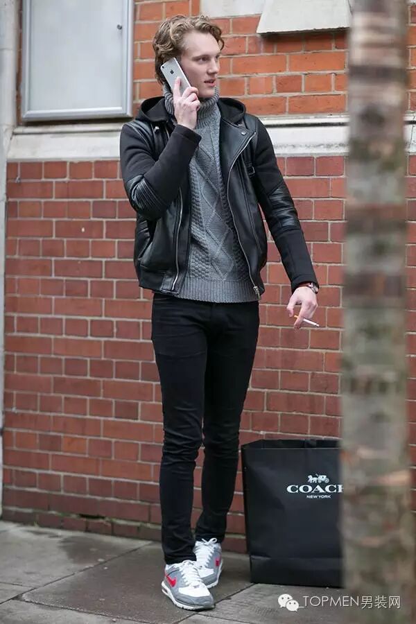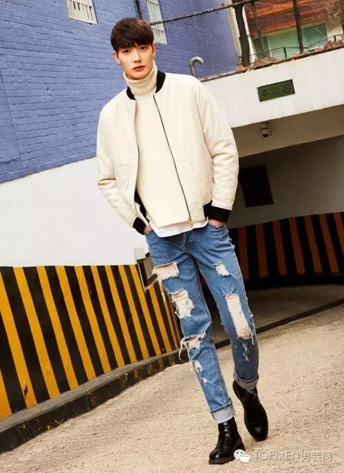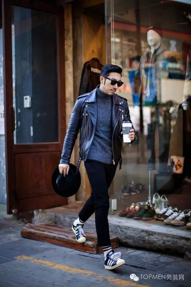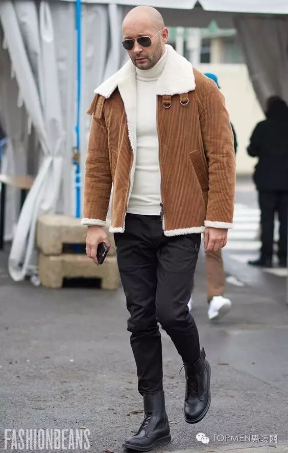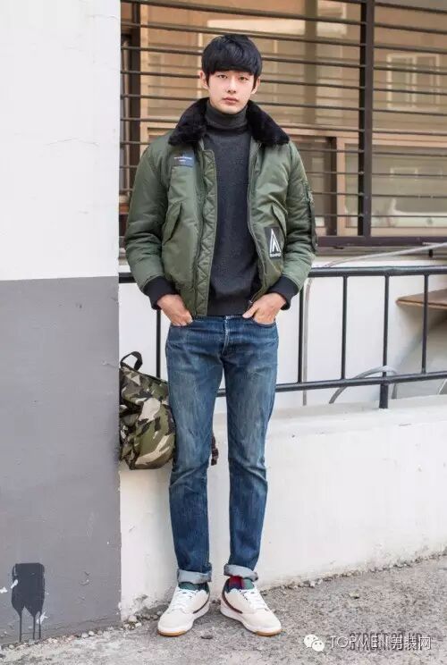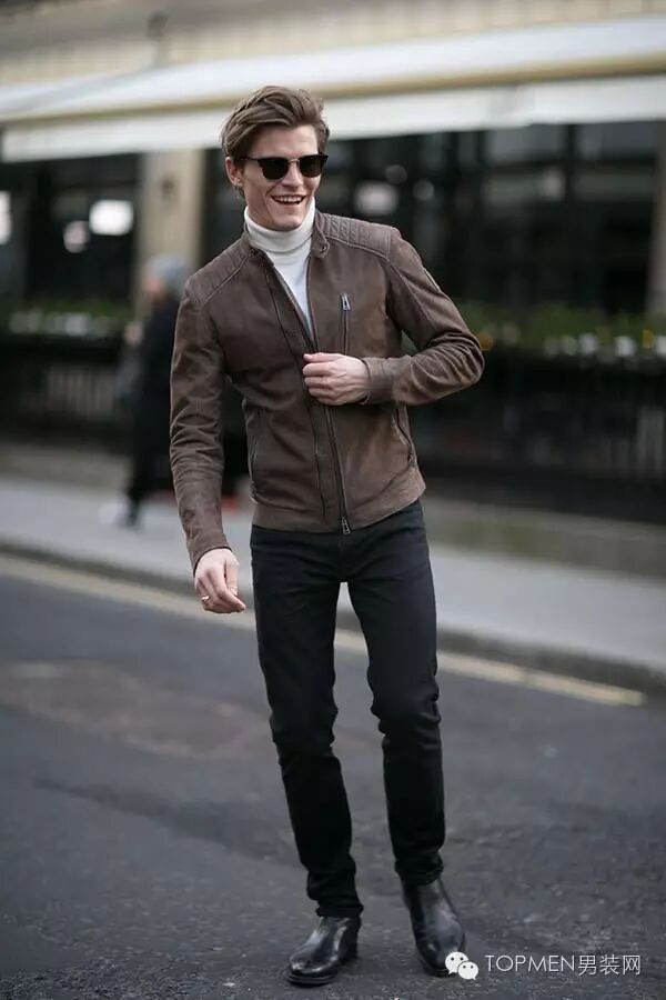 写到这里好像前面都在介绍比较绅士风的穿搭,那么一般平时的休闲装到底适不适合高领毛衣呢?答案是肯定的。但是像那种面料很薄很贴的夹克我并不建议大家搭高领毛衣,如要搭的话最好可以选择质感饱满一些的单品,比如皮夹克、飞行员夹克或者皮毛一体外套都能和高领毛衣一起穿。