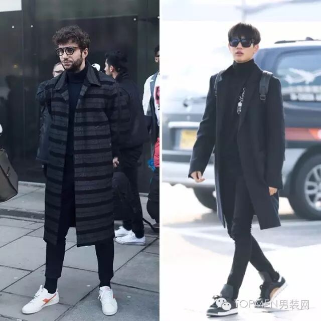 最后,再说一个比较潮的搭法,就是圆领 高领的穿法,这两季无论是欧美还是韩系都还看到蛮多潮人这么穿的。圆领和高领的颜色一定要有区分,而内搭的高领多以薄款的黑白色为主,如果你感兴趣不妨试试看。