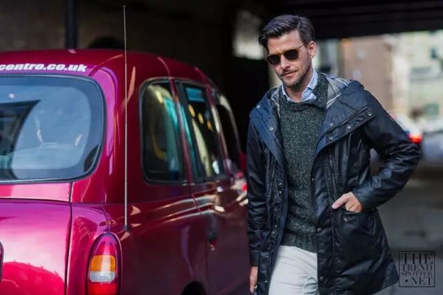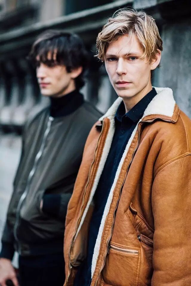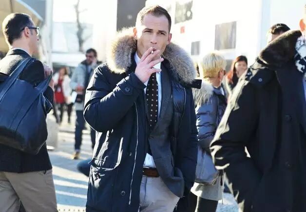另外,翻毛领的外套这两年也还是蛮多潮人上身的,特别是皮毛一体的款式,说实话,是真的暖呀,不比羽绒服差,而且穿上去还没羽绒服臃肿,穿起来也蛮有男人味的。像是棕色的夹克款或者驼色的长款都是可以入的。