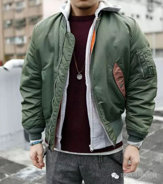 夹克有几种?皮质夹克、棒球夹克、羊毛飞行员夹克.....夹克的防风功能性比起风衣一点也不逊色,且造型感比风衣强!不过以上的夹克衣都不够时髦,时下最时髦的夹克衣要说MA-1,原本做给飞行员穿的飞行服忽然之间就流行了,它不仅混搭能力强,还能让你的外形在路人中脱颖而出。