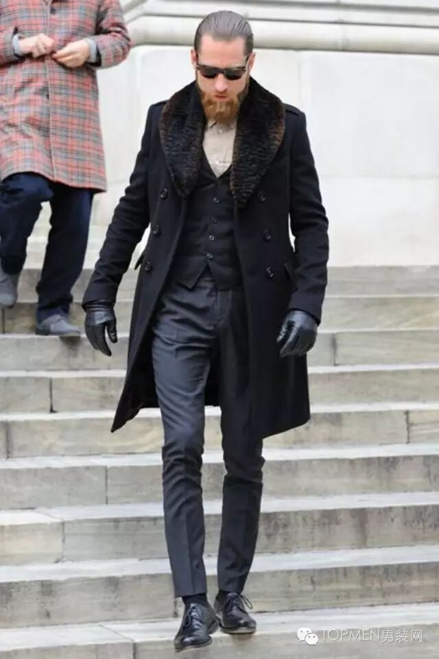 等到年末,天气更冷时,小编建议男士们可以来次满足自己虚荣心的大衣穿搭,华丽的貂毛大衣外套让其华丽古典的优越质感衬托男士的成熟魅力的一面。