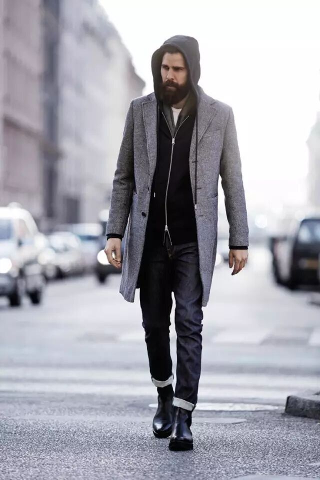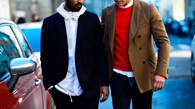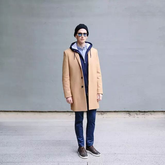 大衣里面可以搭配一件色调偏低调的帽衫,最好是优质的纯棉或者美利奴羊毛。颜色建议选择中性色系,比如,米白、驼色、灰色、藏青色或者黑色。大衣选择裁剪考究的款式,这样配合起来就会显得很街头又很高级。至于裤子看你个人喜好了,配一条舒服的慢跑裤会更运动随意,而一条修身的棉裤子则会更时尚奢华。