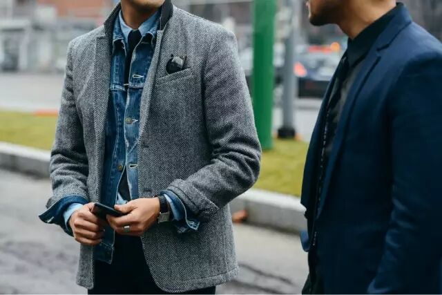 是的,就是西装套装。这样的天气,你除了选择羊毛面料的西装,几乎没有什么其他办法能让西装更加御寒了。当然,你可以找人定制含有粗呢花或者法兰绒成分的西装,但是前提你得是个土豪。