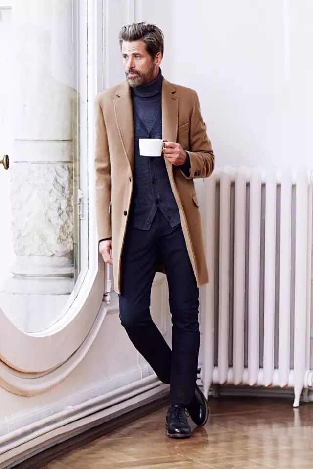聪明的小伙伴这时候就会说,那就多穿件毛衣呗,多难的事啊。没错,但是挑选毛衣还是要注意款式的。目前最流行的就是高领针织毛衣,建议选择围领不要太松或者太紧的款式。它不仅仅非常保暖,不会让你身体内的热量轻易发散出去,还能立马提升你的暖男形象。很显然这不是一件扣整排纽扣的衣服可以达到的效果。