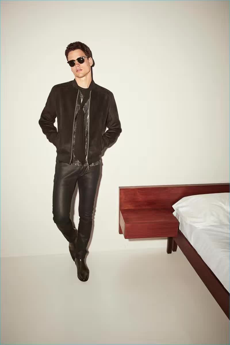 个高的男生这样穿,裤管要塞进靴筒內是首要条件,就是挑一款合身长裤,让自然收束的裤脚与靴筒漂亮衔接,当然如果是切尔西靴就不能把裤管塞进靴筒里了。