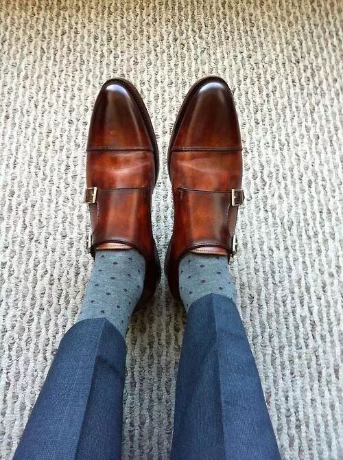 当然,一双正装皮鞋同样必不可少。别看它在全身造型的占比不是很大,可是它的威慑力倒是不小。前一秒你可能还觉得今天穿西装一点亮点都没有,但当你穿上一双岑亮的手工皮鞋的下一秒,你就会发现别人的目光连带你的自信都蹭蹭地上升。