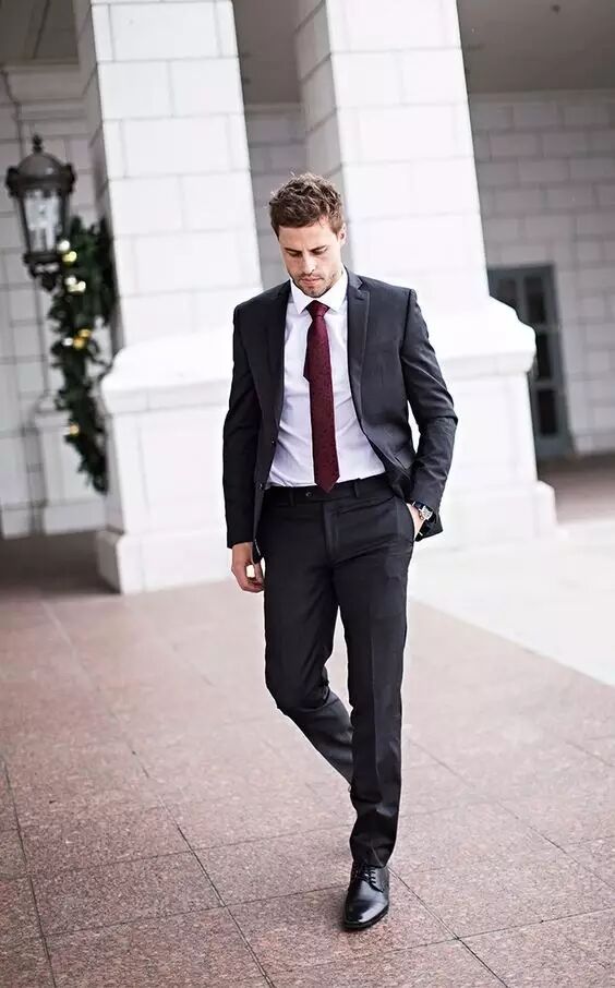 一般来说黑、蓝、酒红、灰是没毛病的,基本上经典色的西装都可以搭配,而且因为色彩都是低饱和度,也不会出现太抢风头的问题。