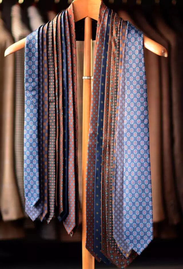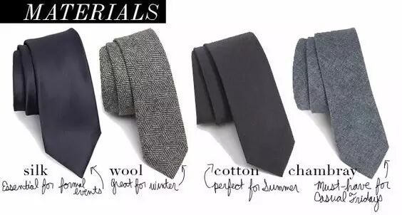 如果是秋冬搭配面料比较厚的西装,除了传统的丝质领带之外,有点纹理的羊毛、棉或者钱布雷的款式也都可以试试,颜色上灰黑色调都是百搭的。