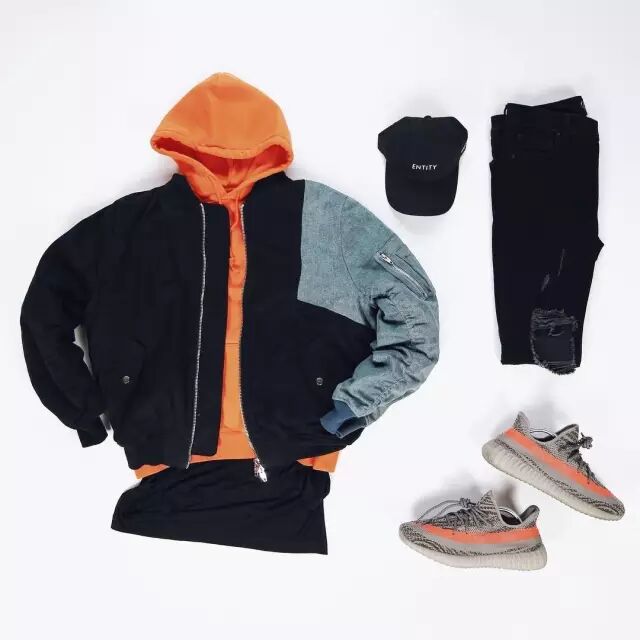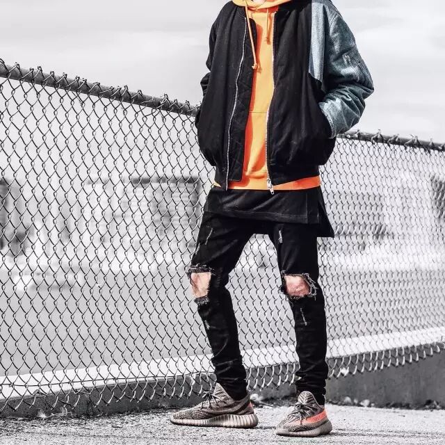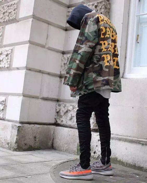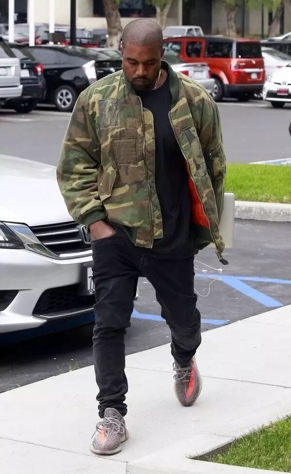有的人可能很难接受亮橙色的夸张,其实迷彩也很好用,也不知道为什么,反正它就是yeezy莫名很搭。
