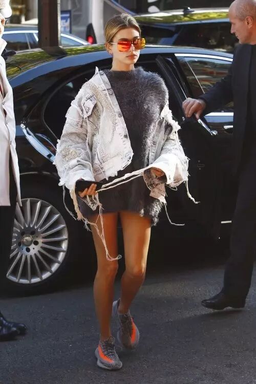 就是V2这标志性的一撇刚开始还被很多人吐槽,不过现在好像有越看越好看的趋势。那么问题来了,如此大的视觉冲击如何才能搭配得恰到好处,穿出去更拉轰呢?先来看看yeezy明星大军们都是怎么演绎的吧↓↓↓