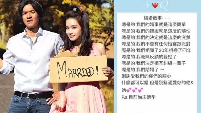 好像现在冯德伦确实有点儿淡出大家的视线,要说最近一次在微博和朋友圈引起轰动的就是9月份和女神舒淇低调宣布结婚的消息了。