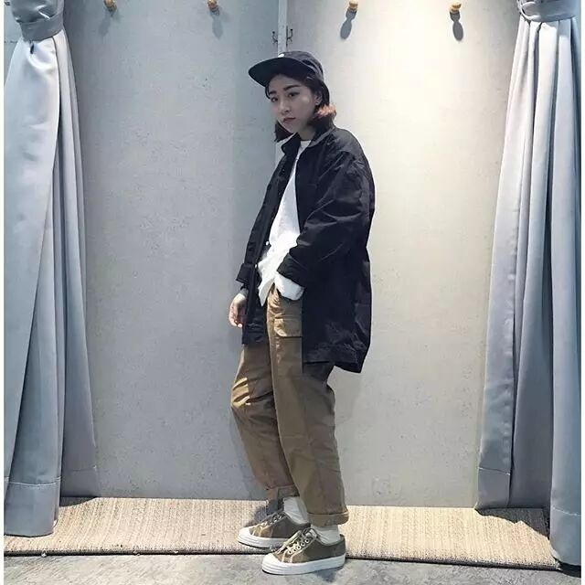即使是女生穿,利用一些单品将其男性化的特点加以升华,毛帽和靴子搭配就能将工装穿出时尚感。