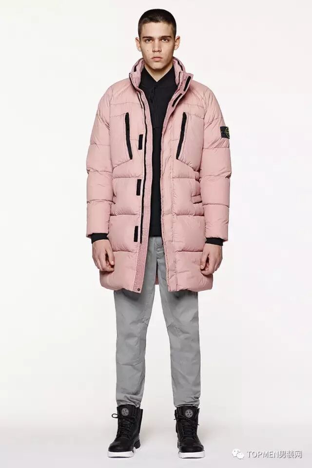 而潮人很爱的Stone Island在16秋冬系列中也根据现在的趋势推出了粉色的羽绒服,是男款哟。要知道它家衣服的风格还是挺硬朗的,所以谁说男人就不能穿粉色了,明明这么好看。