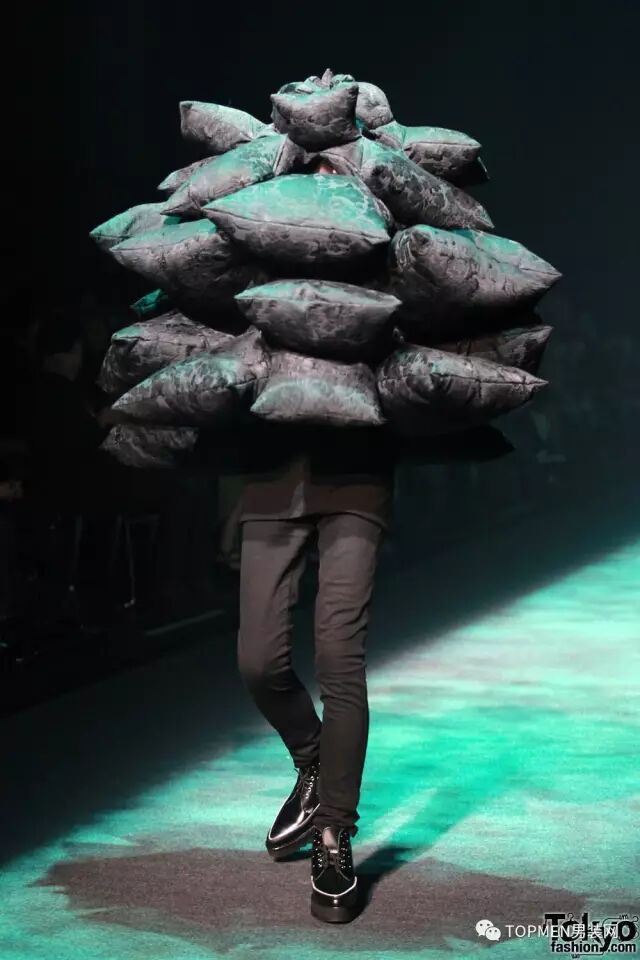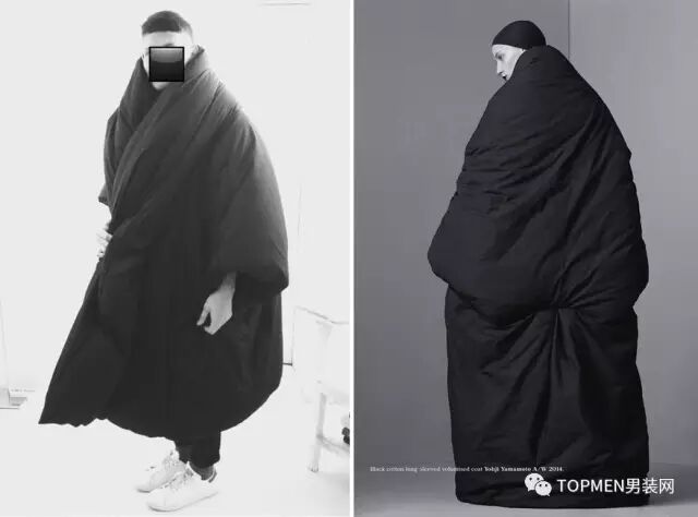 而这类puff型的羽绒服除了有上面这种设计不按常理出牌的类型,还有下面这种非常Yohji Yamamoto的裹铺盖型。